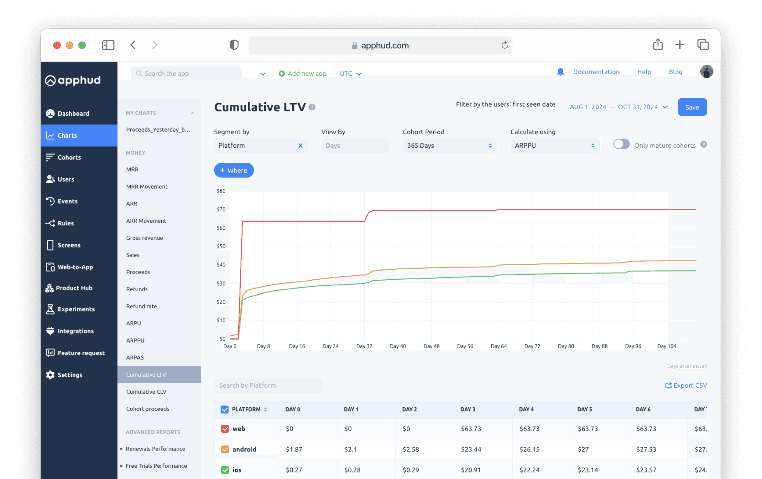 Every flow is fully integrated with Apphud, giving you seamless access to the metrics that matter. Monitor and optimize your web-to-web campaigns with the same depth of insights as your iOS or Android apps.